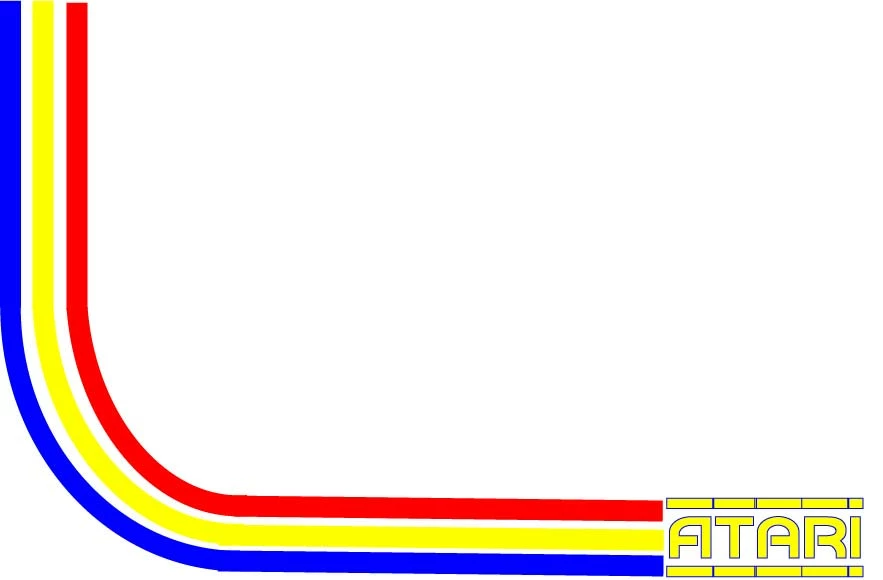 It's a design motif used by Atari in their classic Arcade cabinets/marquees on the video games, and they used the same design style in these flyers...various colored lines are traced around as a border, almost like a road on a map