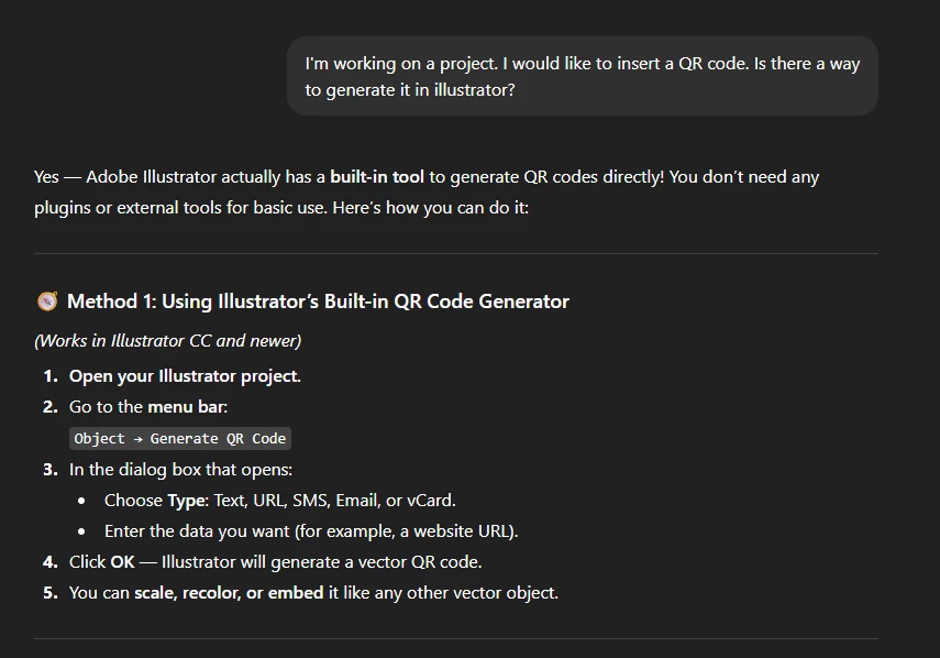 I'm working on a project. I would like to insert a QR code. Is there a way to generate it in illustrator?