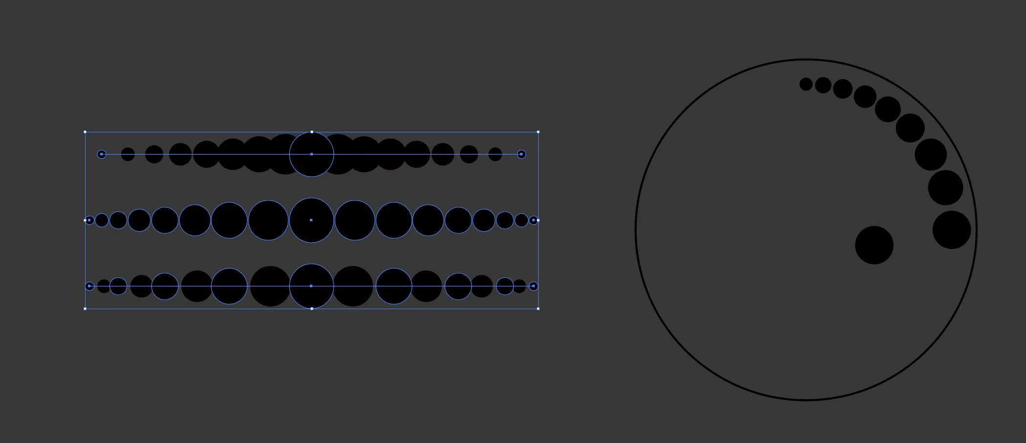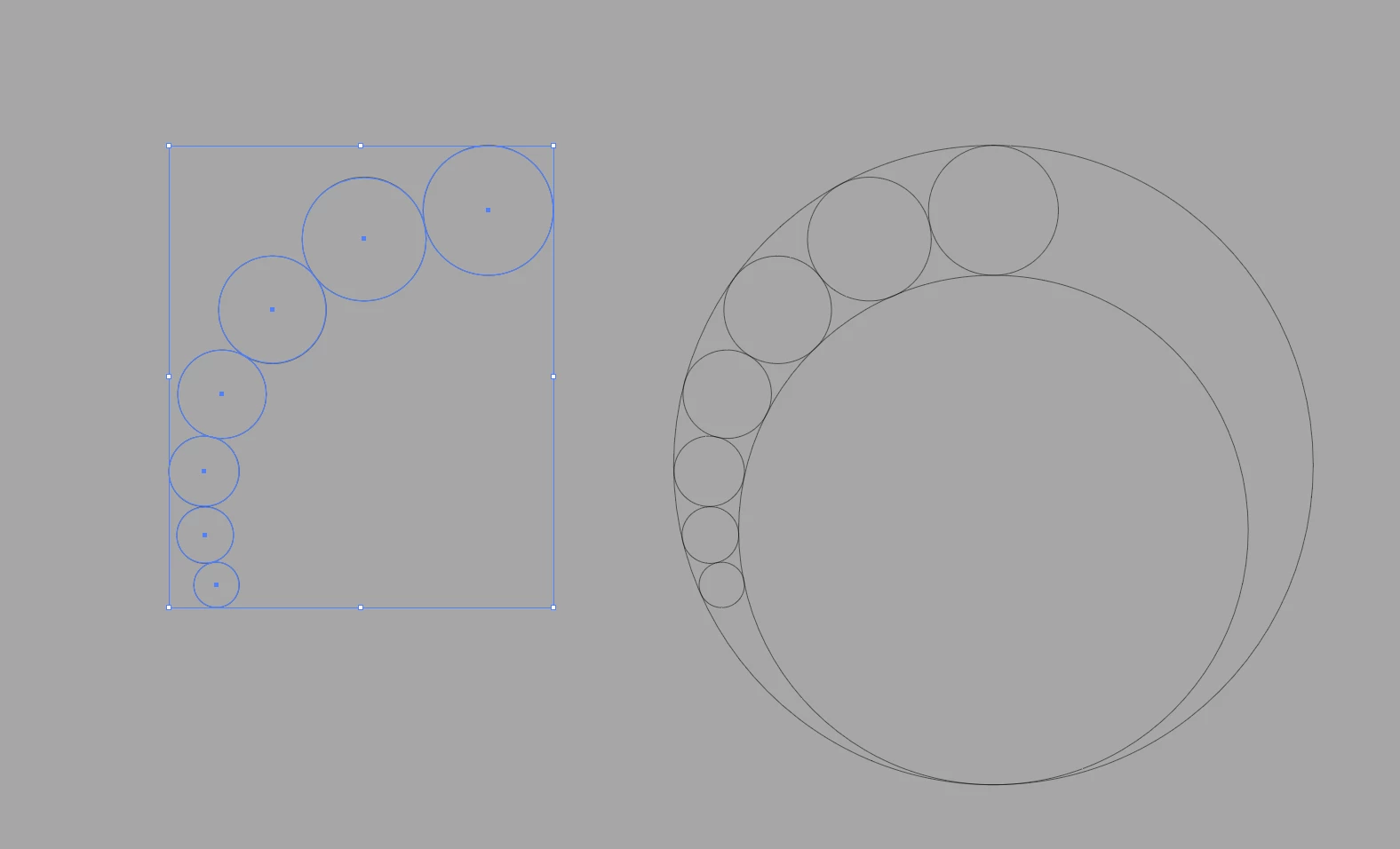 沿圆弧不断增加,并与不断扩大的多个圆紧密相邻-如何创建标准化的矢量图形?