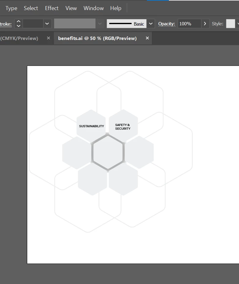 3) Select each rectangle and the corresponding lower hexagon and click Make (Opacity) Mask in the Transparency panel.