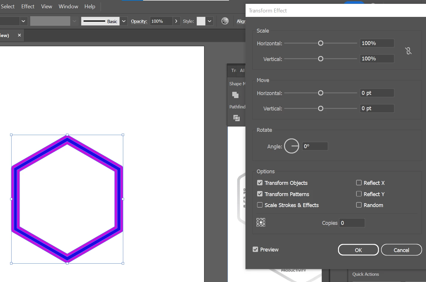 2) Rotate 5 copies of the rectangle made in 1) round the centre of the artwork with the Rotate Tool at 60 degrees;