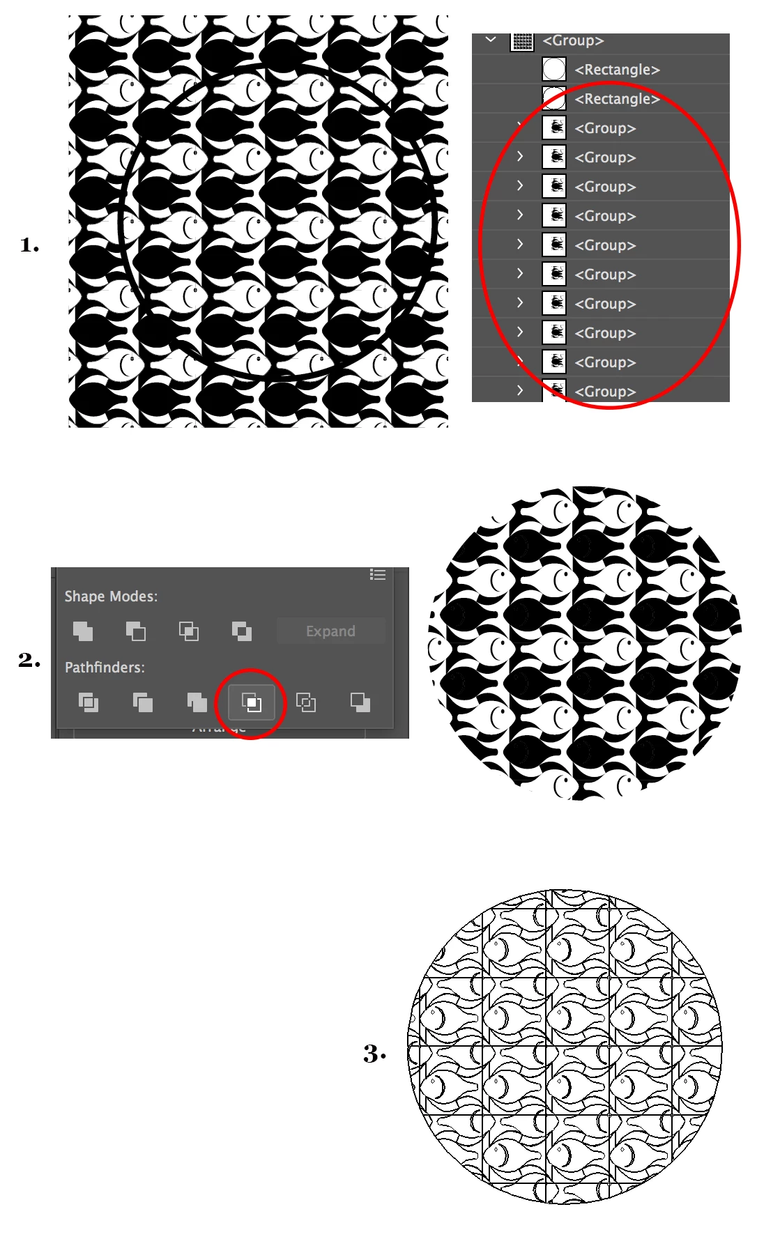 Step 2: Select the pattern and the Clipping Path. (Make sure you have a copy of the Clipping Mask Path to keep for the outline stroke) Once all the items are selected with the non-pattern path on top, Choose the Crop Icon in the Pathfinder Section of the Pathfinder Panel.