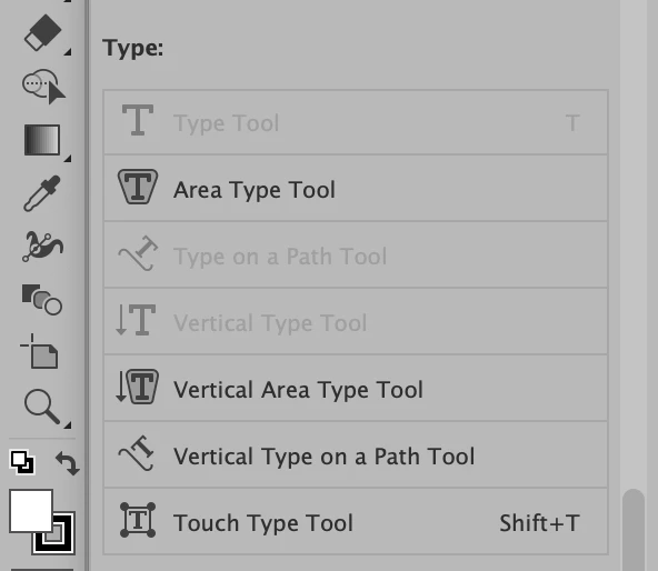 How to customize toolbar in Illustrator 2020 on macOS to see all the Type Tools