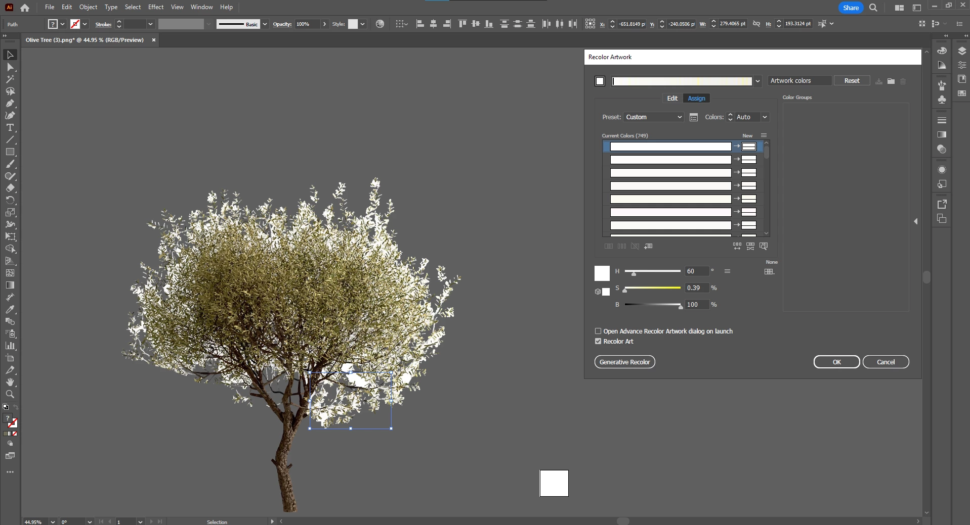 I used Image Trace on High Fidelity to get the best resolution of this photo of a tree and I'm currently trying to remove as much white from the background as possible. I noticed with using the Recolor Artwork tool you can grab every color in your workspace and sort the colors from light to dark. I don't want to change the colors and would much rather delete them if this is possible please help me out I've been on the search for weeks now!