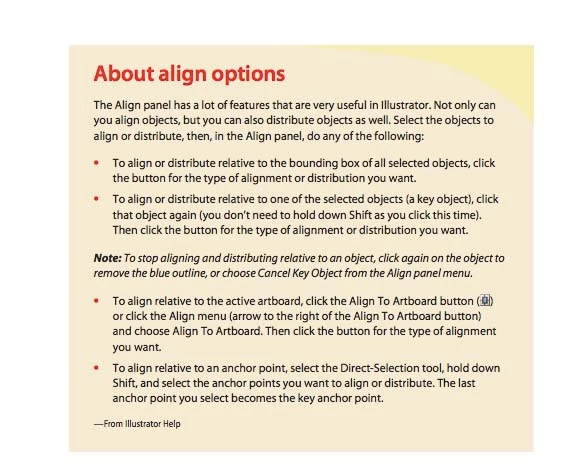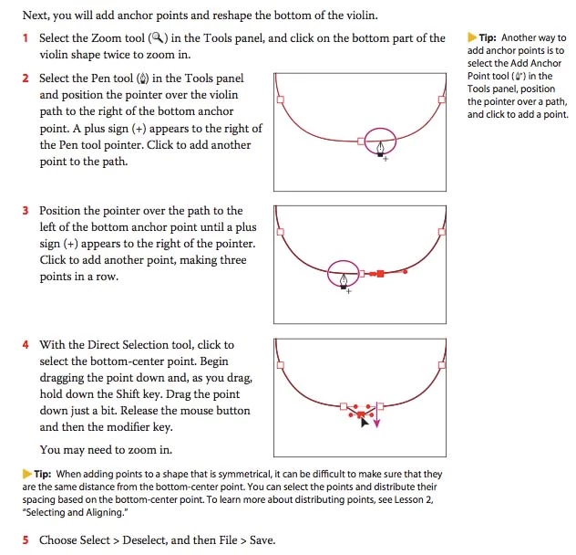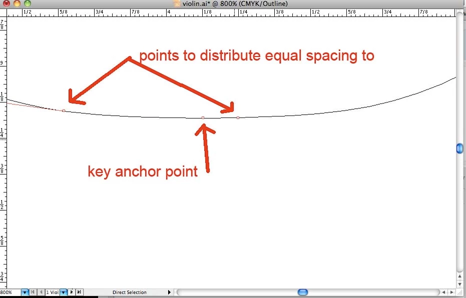 I am working in Lesson 5 of Adobe Illustrator CS5 Classroom in a Book, and am having a problem selecting the 2 anchor points to distribute equal space based on the bottom center anchor point of the violin. The note said to reference chapter 2, which I have already been through, but even after reading the Illustrator Help dialog on pg 75, I am still at a loss. Can anyone explain how to distribute this equal spacing of 2 anchors relative to one anchor point?