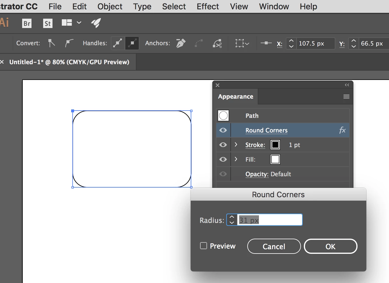 How do I change the rounded rectangle's properties? I just want to adjust the corners to be more rounded or less rounded. I'm using Adobe Illustrator CC.