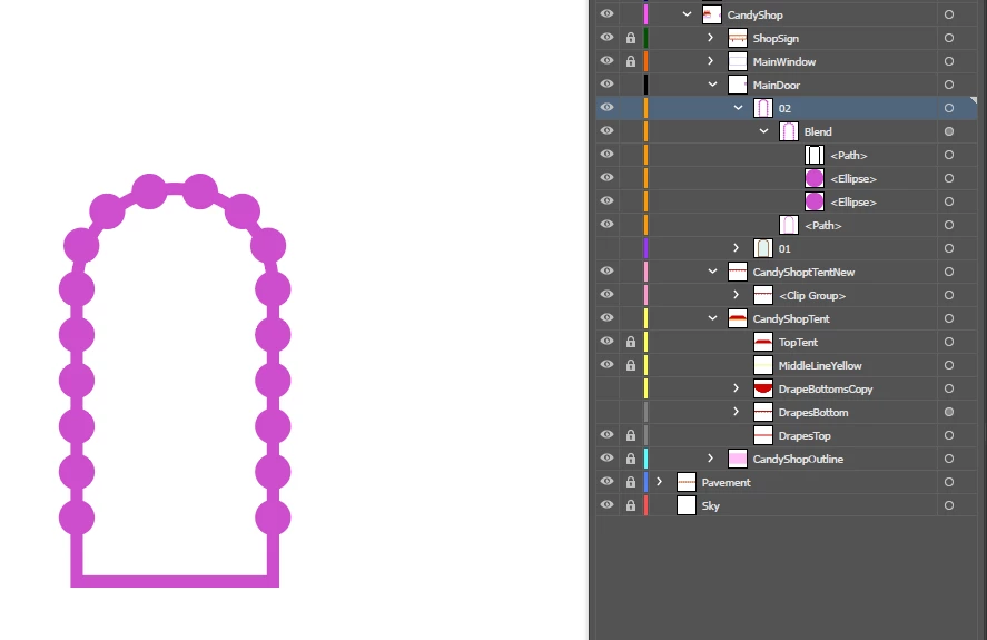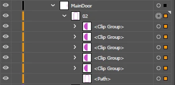 Your next step is with the door frame path (beneath the Blend that is just called <Path>).