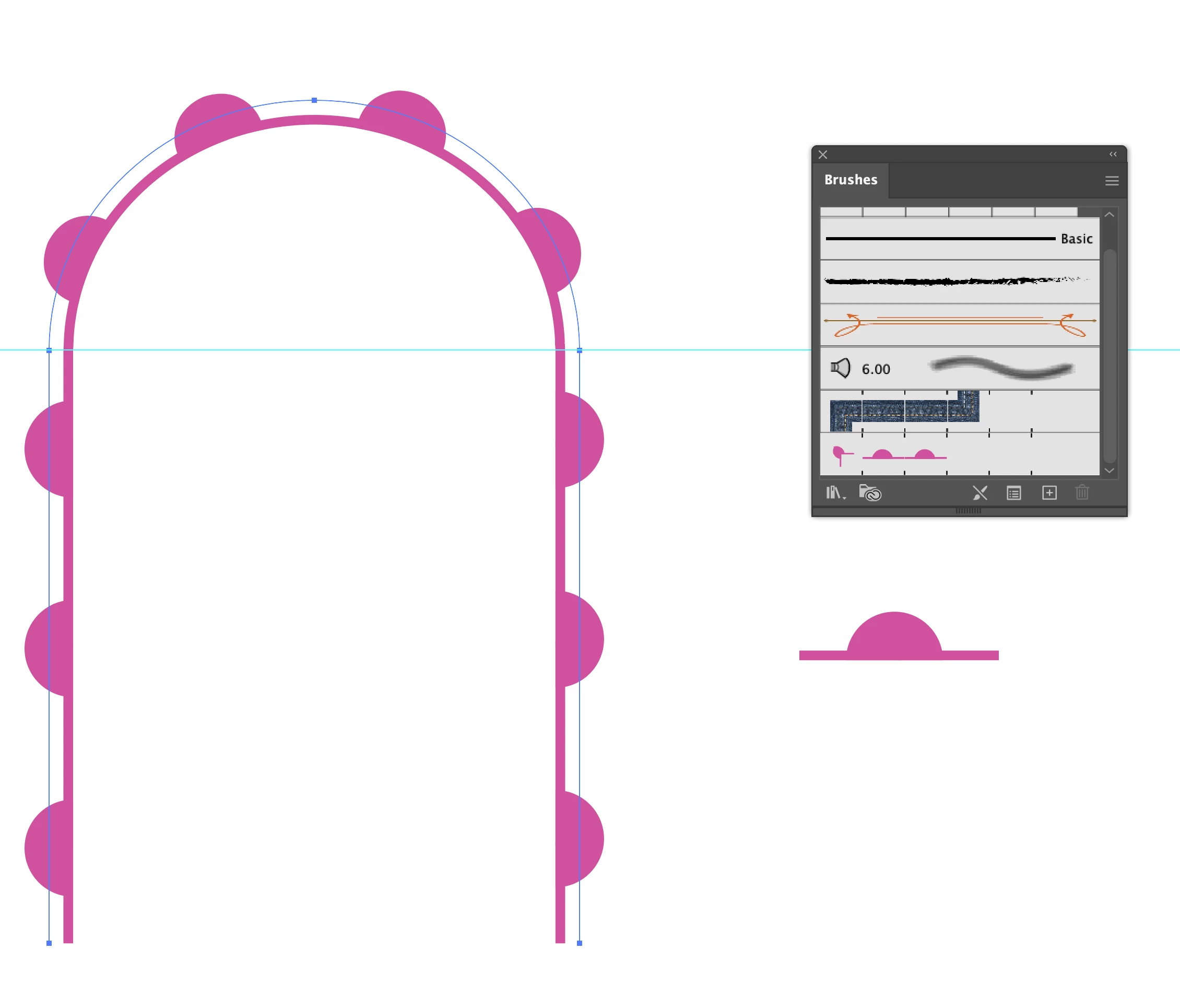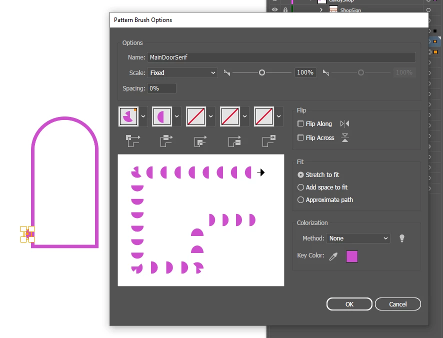 I have a question: As I see your original image, you have half of each circle outside the door frame path, in other words the centre is at the outer edge of the Stroke. In your latest image you have each circle centred on the door frame path, in other words less than half of it outside.