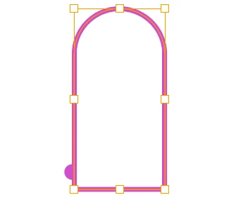 Based on the original image I suggested the Stroke Aligned to Inside rather than to Centre (in the first step); obviously, this makes a difference in the size of the actual door frame path equalling the Stroke Weight, for both width and height, so this leads to two possible solutions, if you wish to have half of each circle outside: