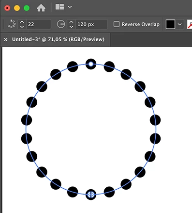 6b) Or use the Direct Selection Tool and Click the topmost circle (the 23rd which is on top of the 1st at the very top) and delete it.