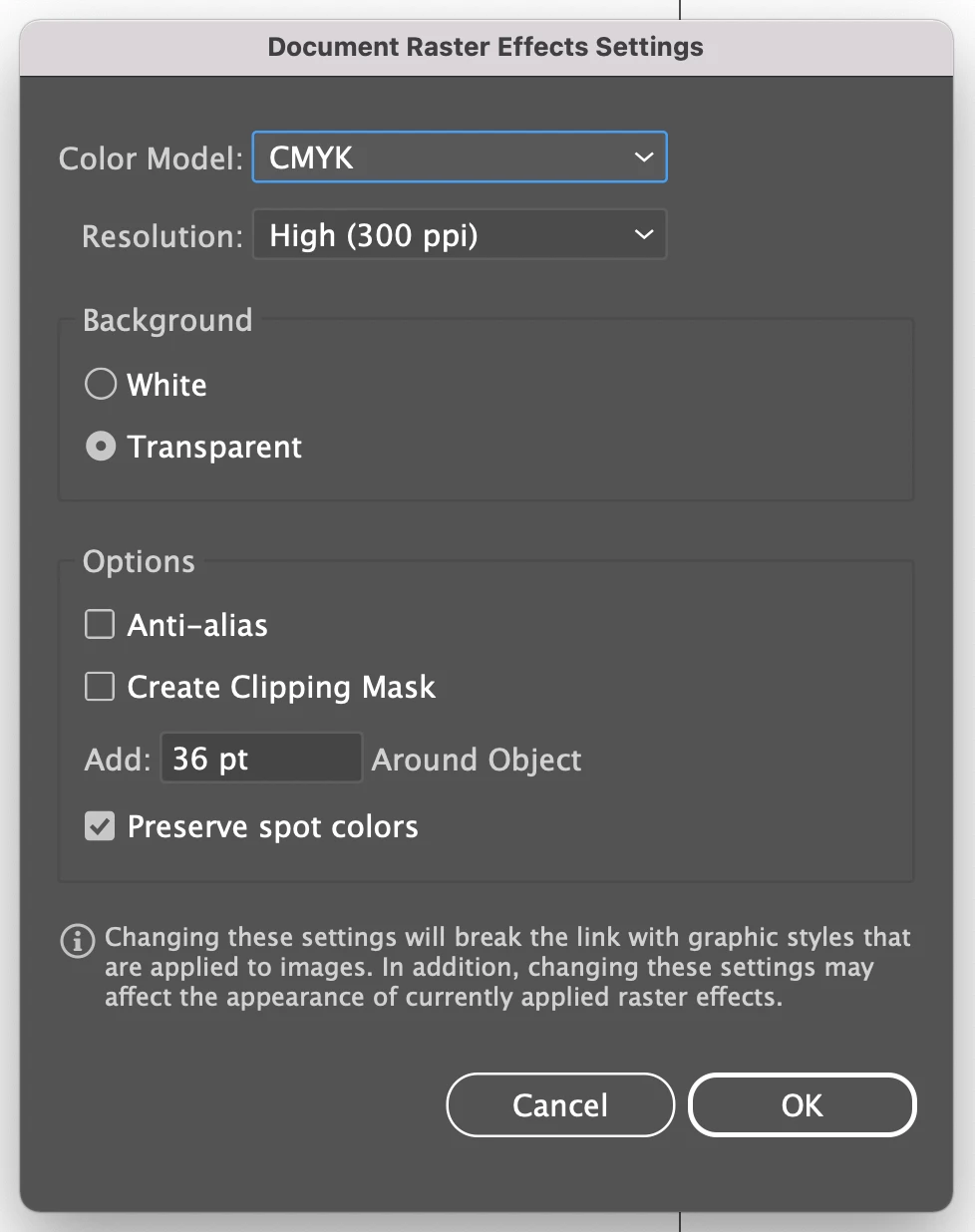 How to get document raster effect setting details from the dictionary suites