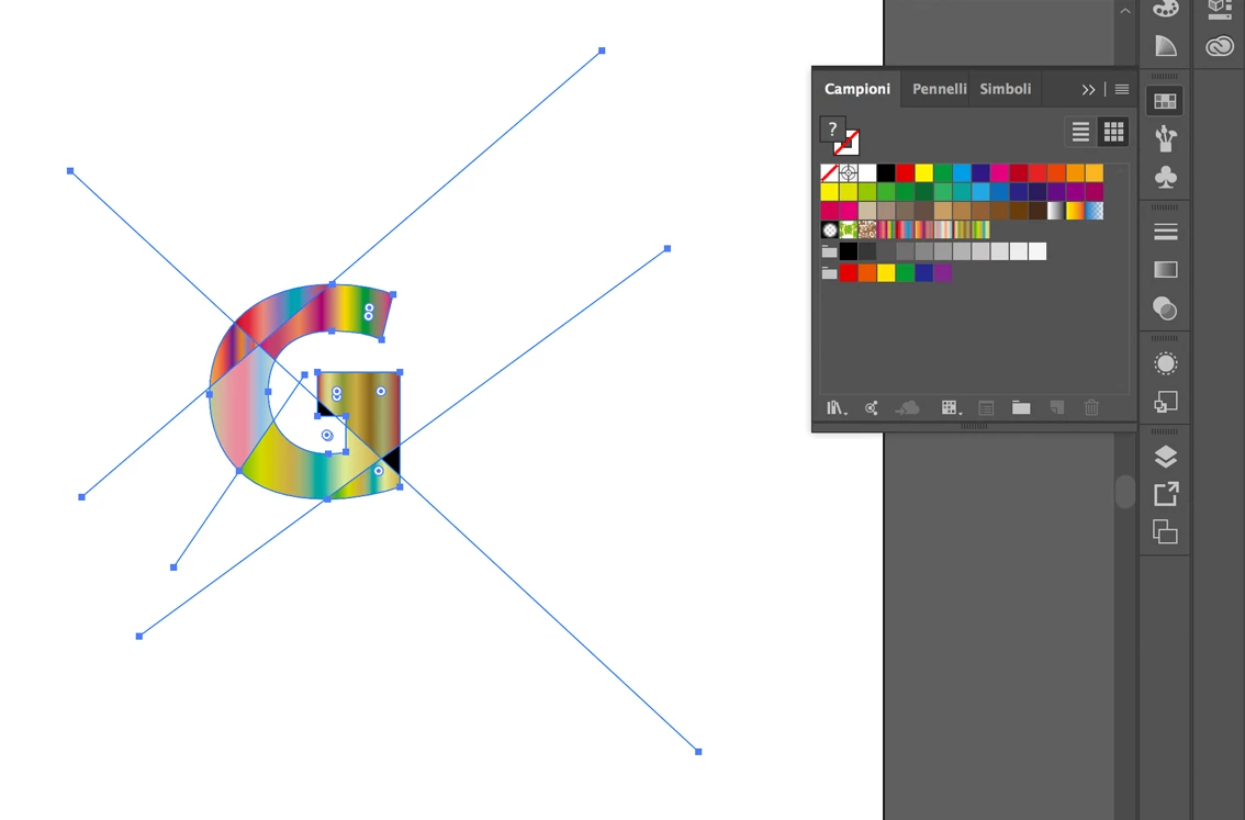 I wan to have different selected areas on letter "G" and give each part a different gradient.