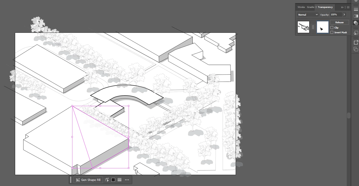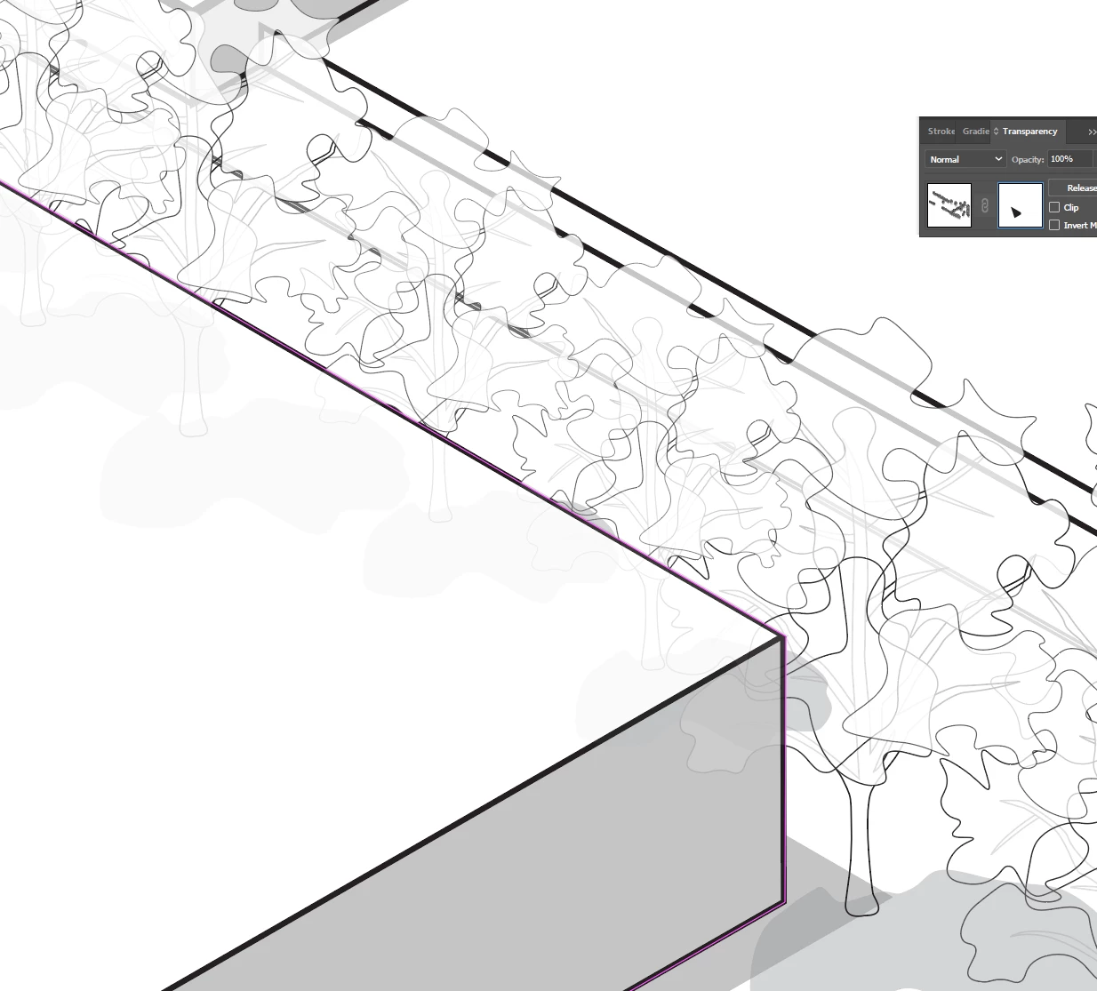 I'm working on a project where I have trees and buildings. There are trees throughout the image but I need them to fall behind the buildings and not sit above them. I would think that this would be a simple inverted clipping mask like I'd make in photoshop. How would I go about doing this by using another path shape as the mask. I'd like it to be made from a shape that I can easily edit so that I can adjust it later if I need to.