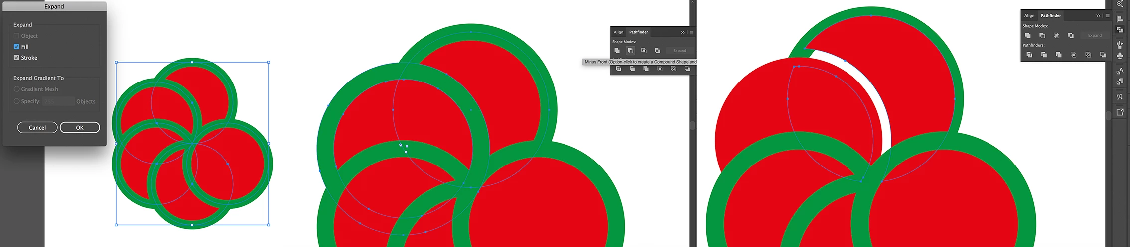 For the one-color print job, what I've done is convert each shape to white. Kinda boring. So I want to set it up so that the borders which intersect are "cut out" (AKA transparent). This way the logo will maintain its unique design with each smaller overlapping area being preserved. It's all in white though. Does this make sense?