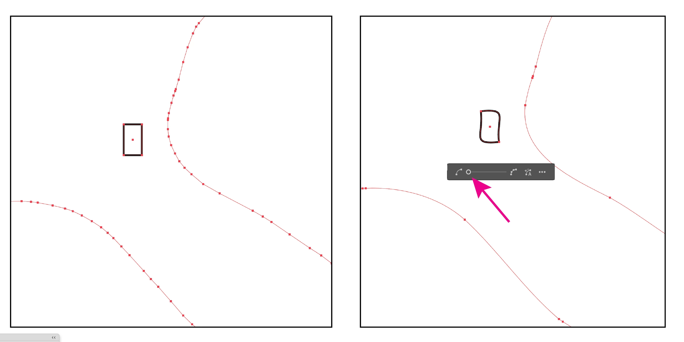 B. In my geographical programs, when I have two layers with vector objects, I can "transfer selection" from one layer to the second, to the objects which lay under. And can I make such "transfer of selection" also in AI ? Then I could automate it more -> I make dots bigger an bigger to be tangent to the line or even crossing the line. Then I select the "dots layer" and transfer the selection to the parts, which are under. And voila!