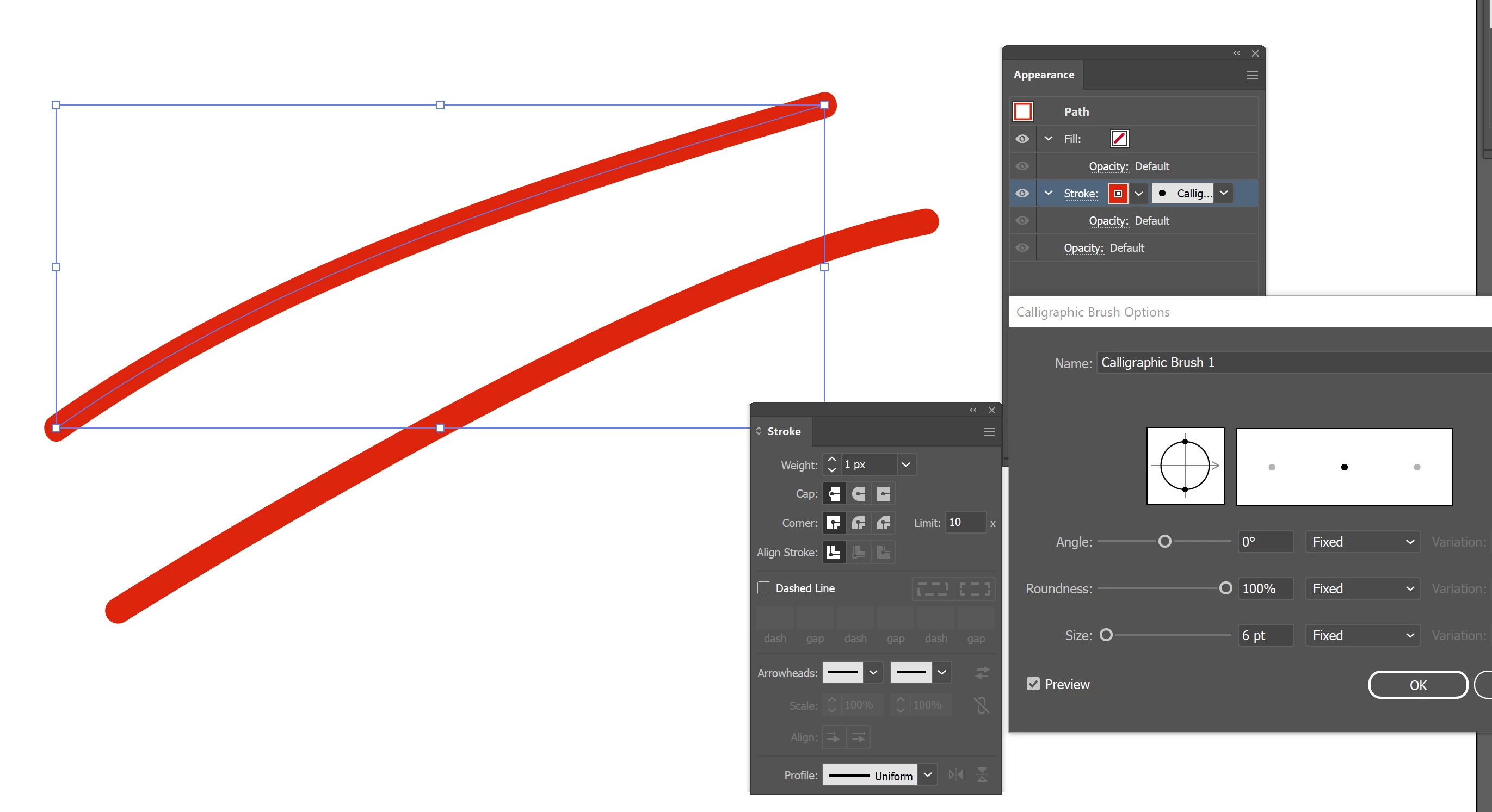 both lines use the same profile, I may miss or have done something the wrong way here, but I would like to know how to match the stroke size automatically somehow.