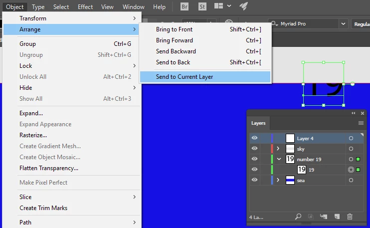 5. Click the name of the desired layer in the Layers panel. Then choose Object > Arrange > Send To Current Layer.