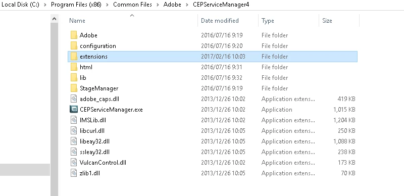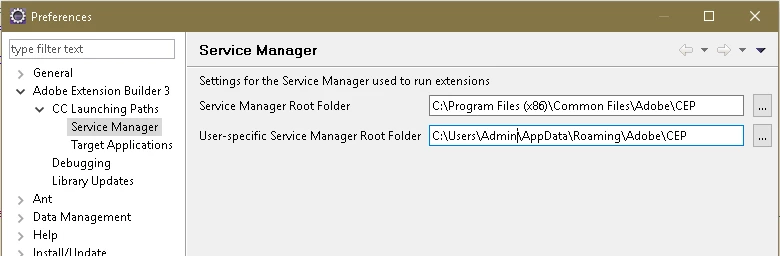 Service Manager Root directory is shown as;C:\Program Files (x86)\Common Files\Adobe\CEPServiceManager4