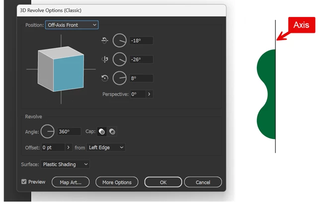 I want to revolve this image about this axis. So that it will create a 3D image of a dumbbell. How to place this axis in this pop up window?