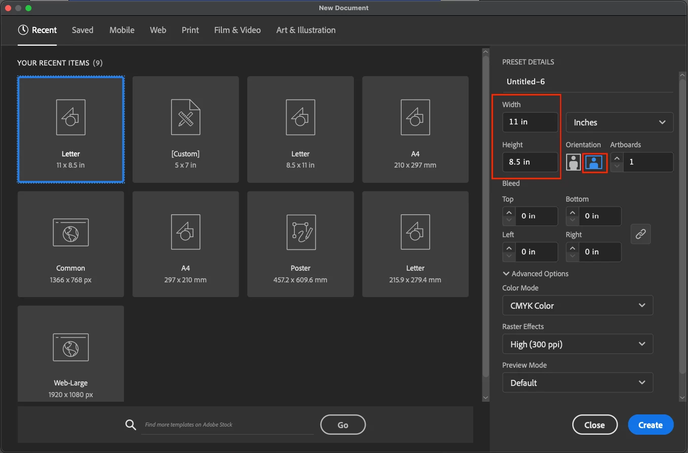 How to print two 5x7 artboard artwork side by side on a 8.5x11 size page in Illustrator