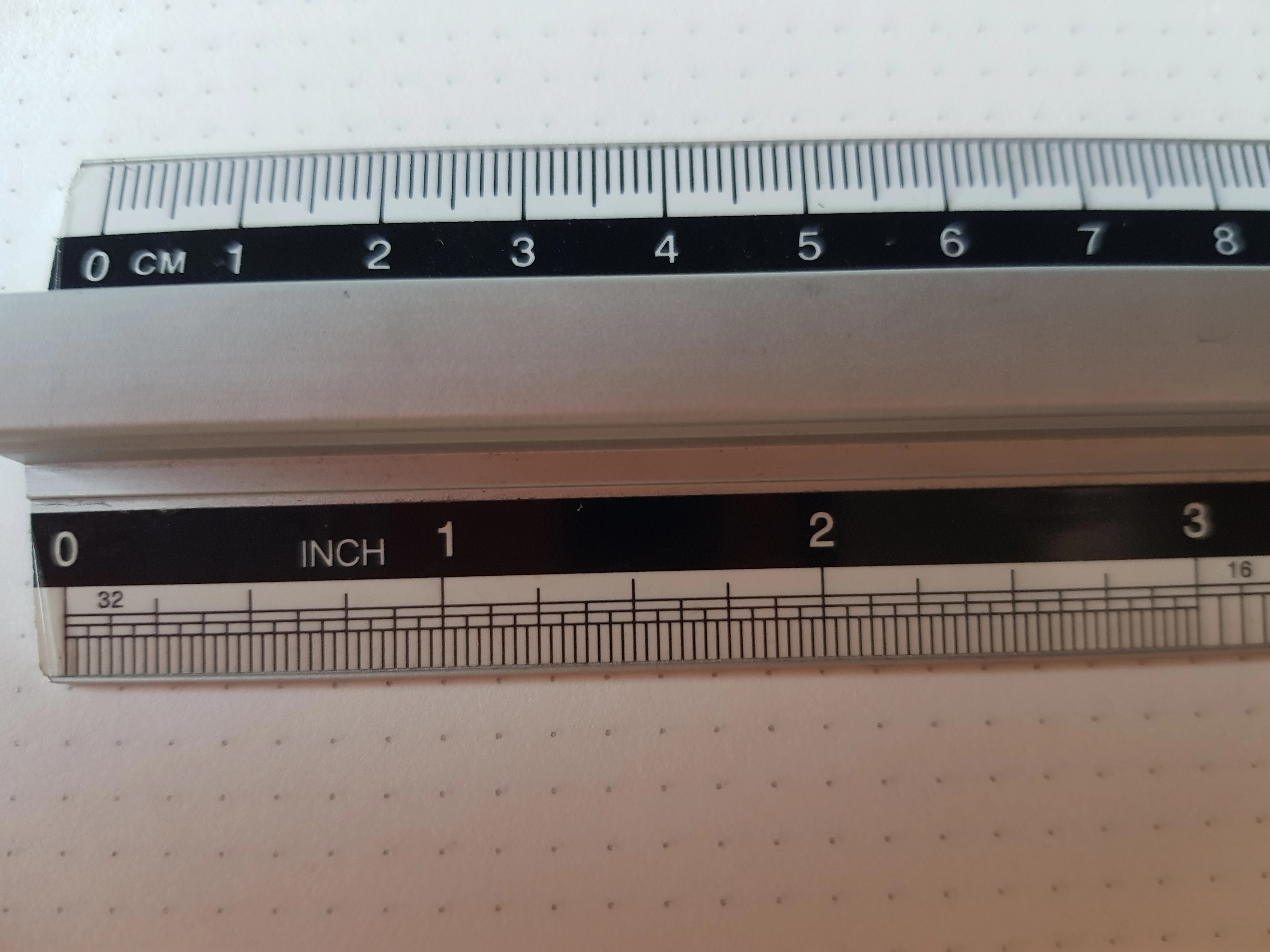 Here are images of the grid - the ruler is nicely lined up, but it may seem off in the pictures, I don't know if these pics help, but I included both the centimeter and inch side of the ruler (unfortunately the images seem to be upside down):