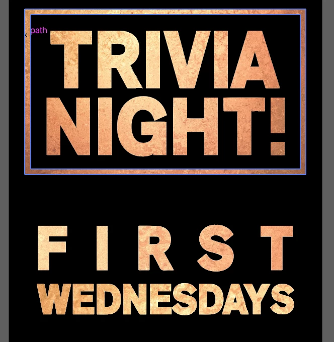 Hello! In this example, I'm making a flyer with this coppery lettering. This is a 4 in by 8.5 in flyer and is not on a huge artboard. First I'm typing the words I want. Then I'm making outlines of the letters to make a shape, and I'm "Drawing inside the shape" to paste a high res image of a copper plate. I'm doing this for each letter shape, so I'm pasting in a large copper image 28 times. This file is almost 800MB! I feel like I'm taking a long way around doing something and causing a lot of heavy fuss. Can someone tell me what I should be doing instead to acheive this result with a more reasonable file size? Thank you!