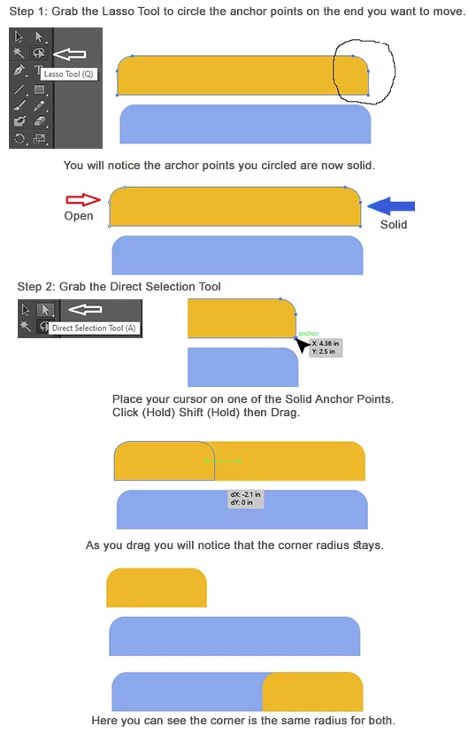 I duplicate this shape and want to reduce the width: so I select the shape, open the Transform dialogue, set the anchor point, make sure "Scale corners" is not selected, make sure "Constrain height and width" is not selected, and enter the required width at W.