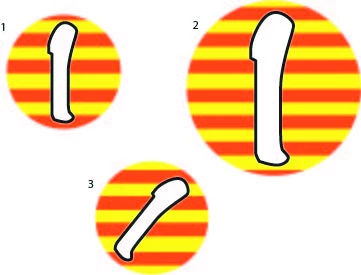 In the image below the pattern looks a bit blurry but you can see number 1 is the original image, number 2 is where I enlarged the circle but the pattern stays the same size and number 3 I rotated the circle but the pattern doesn't rotate. It's locked and I cannot resize it nor rotate it. I want the lines to be diagonal.