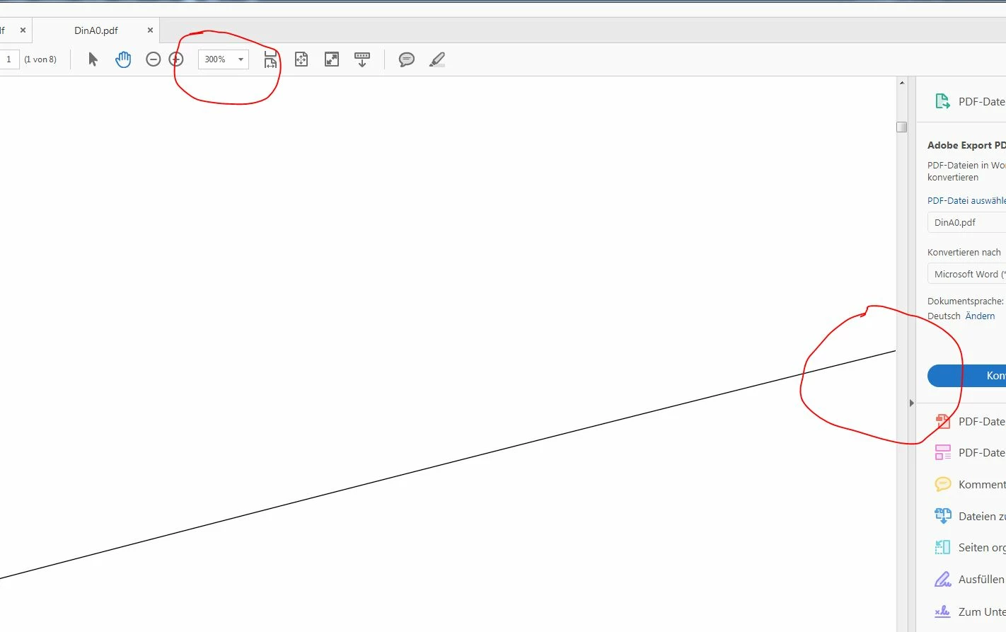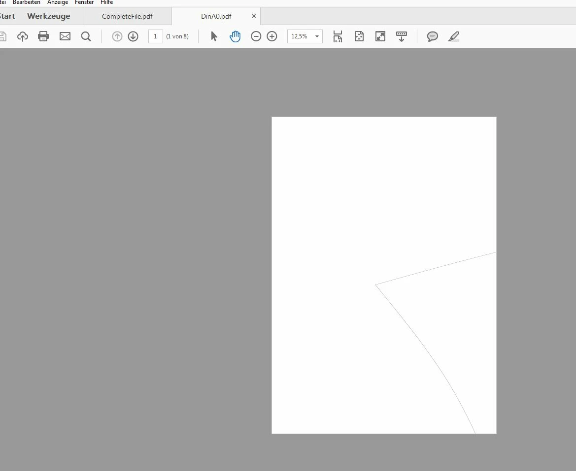 There I choose the option to tile and I choose A0 format. I can choose A0 if I preselect a virtual pdf printer before. I have different ones installed, PDFCreator PDF24 and others. Then I click on print and it prints and the virtual pdf creator opens the file and I get 8 pages with the splitted/tiled file: