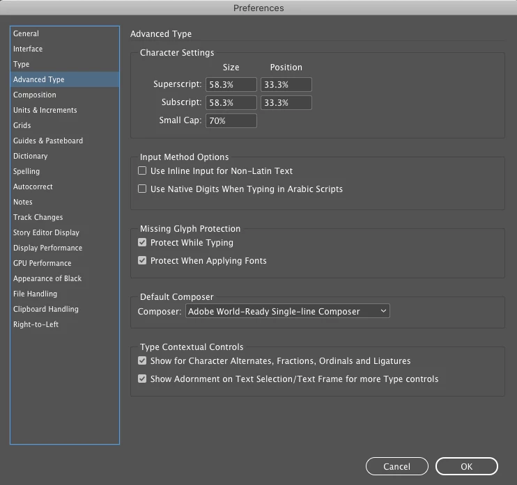> select: Adobe World-Ready single-line composer