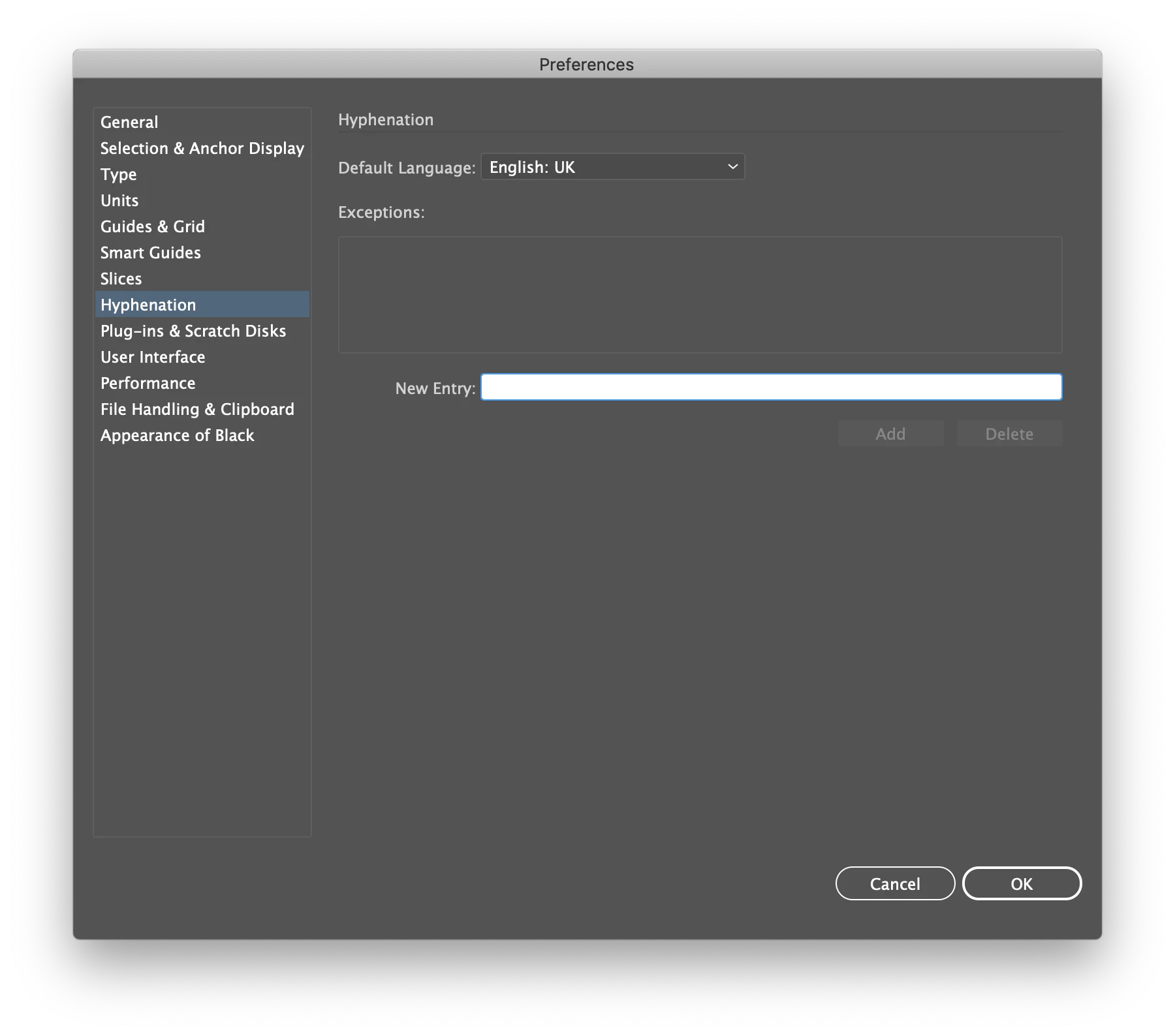 Check Preferences > Hyphenation > Default Language