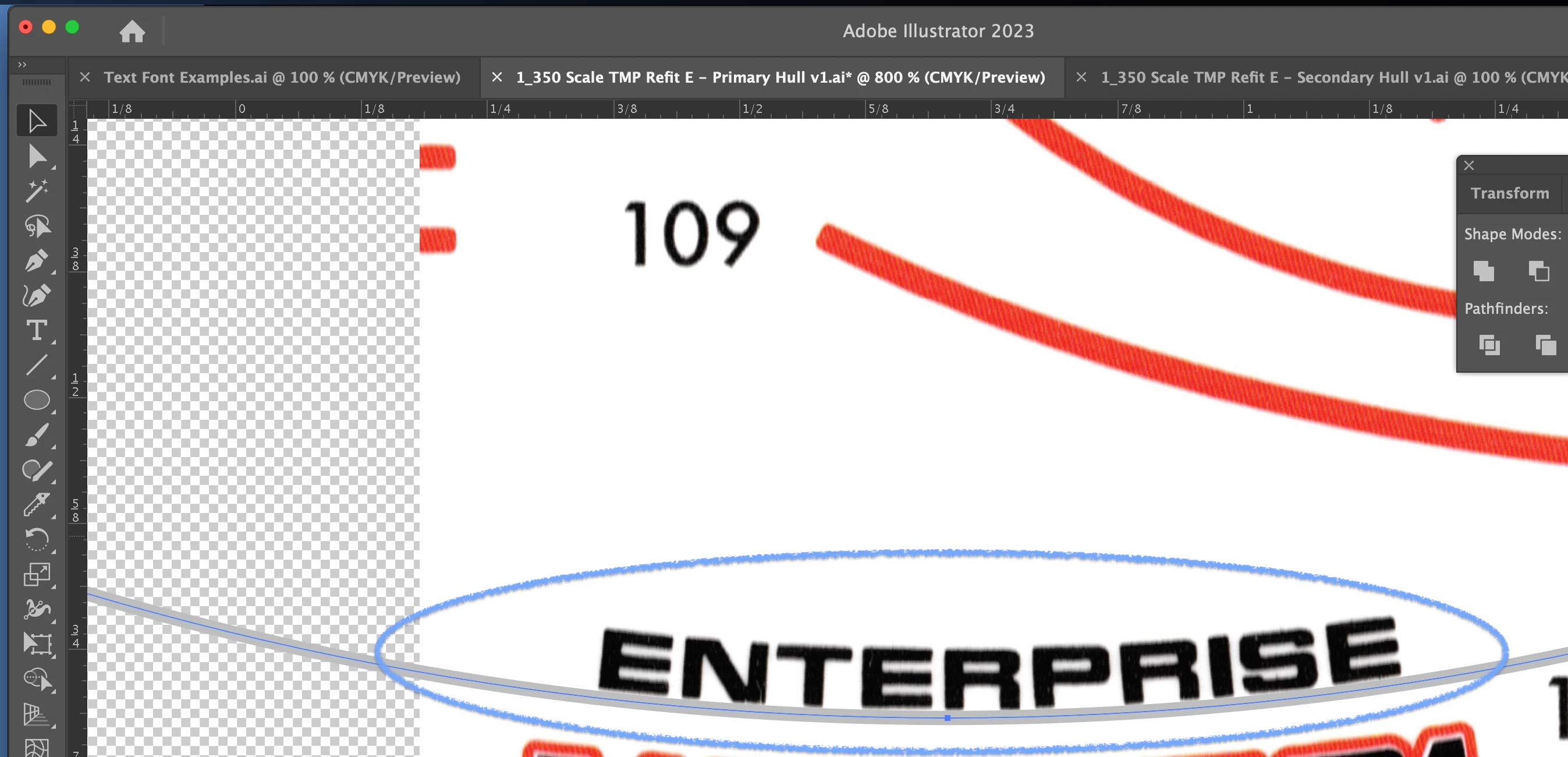 I've used the Type on a Path Tool to draw text on the outer part of a circle shape, but how do I draw text on the inner part? I need to recreate the 'ENTERPRISE' text from a scanned model kit decal sheet and I've got a grey circle at just the right radius, but when I use the Type on a Path Tool it only lets me type text on the outside of the circle.