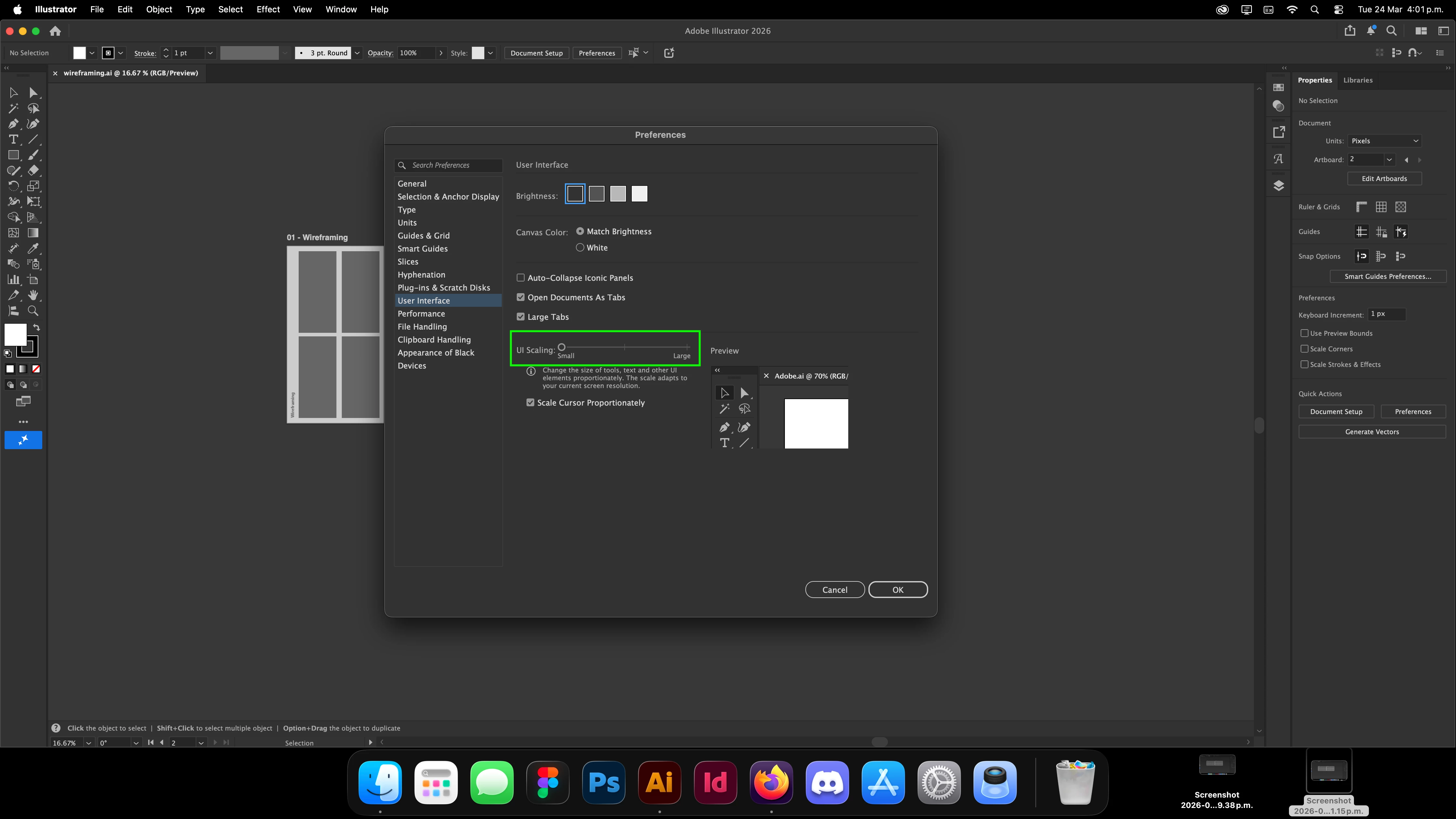 I’ve been having issues with UI scaling on my 24" iMac (2021, M1). I can’t seem to find an in-between size that works for me. I recently reinstalled all my Adobe apps after resetting my computer, and now I can’t get the UI back to how I had it before.