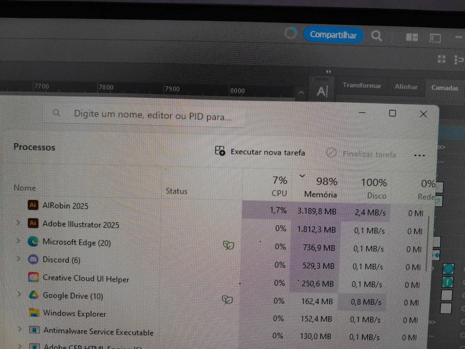 When I'm saving a file after a little more changes illustrator crashes, in the task manager it reaches 100% usage in RAM and Memory, AIRobin in front with more usage, I've already lost a file because I couldn't save your changes, I've already uninstalled illustrator and Adobe Cloud but the problem continues, first it happened in a file, I thought it was him, but after editing another the problem is the same, I have a good Pc I never had this problem of use at 100%, I have 32GB of RAM, SSD 1tb and a Ryzen 5 4600G.