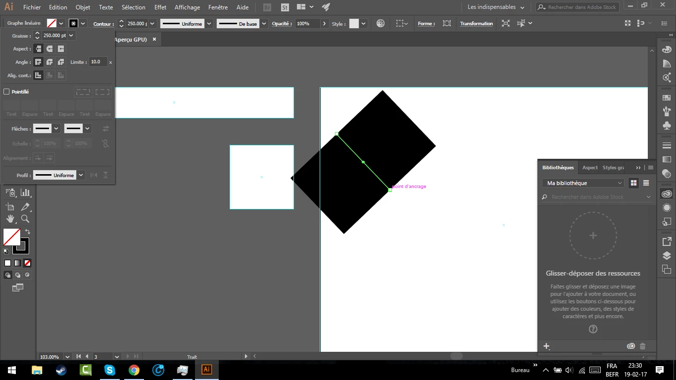 When I make a line, the outline is still at 1000.000 pt even if I want to put it on 1 pt it recovers to 1000.000 pt. I have another problem when I make a "new document", there is nothing displayed. Do you know where the problem is?
