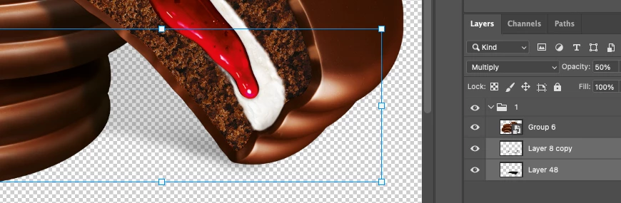 One PSD is used as the background, and the other PSD contains a visual with a shadow underneath set to Multiply blending mode.