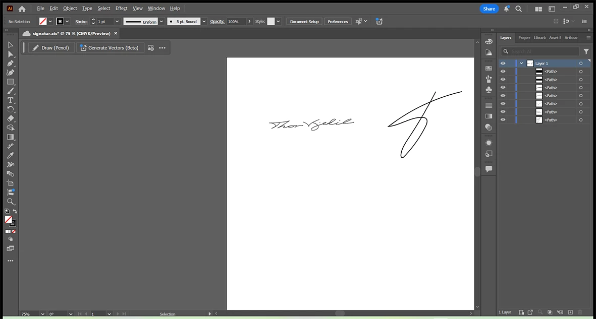I have made a signature with Wacom drawing tablet in Illustrator.