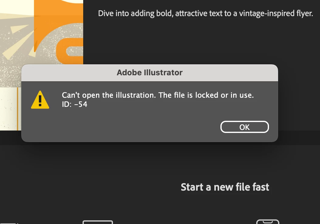 I'm getting this 'cant open illustration file - the filed Is locked or in use - ID-54 - pls help