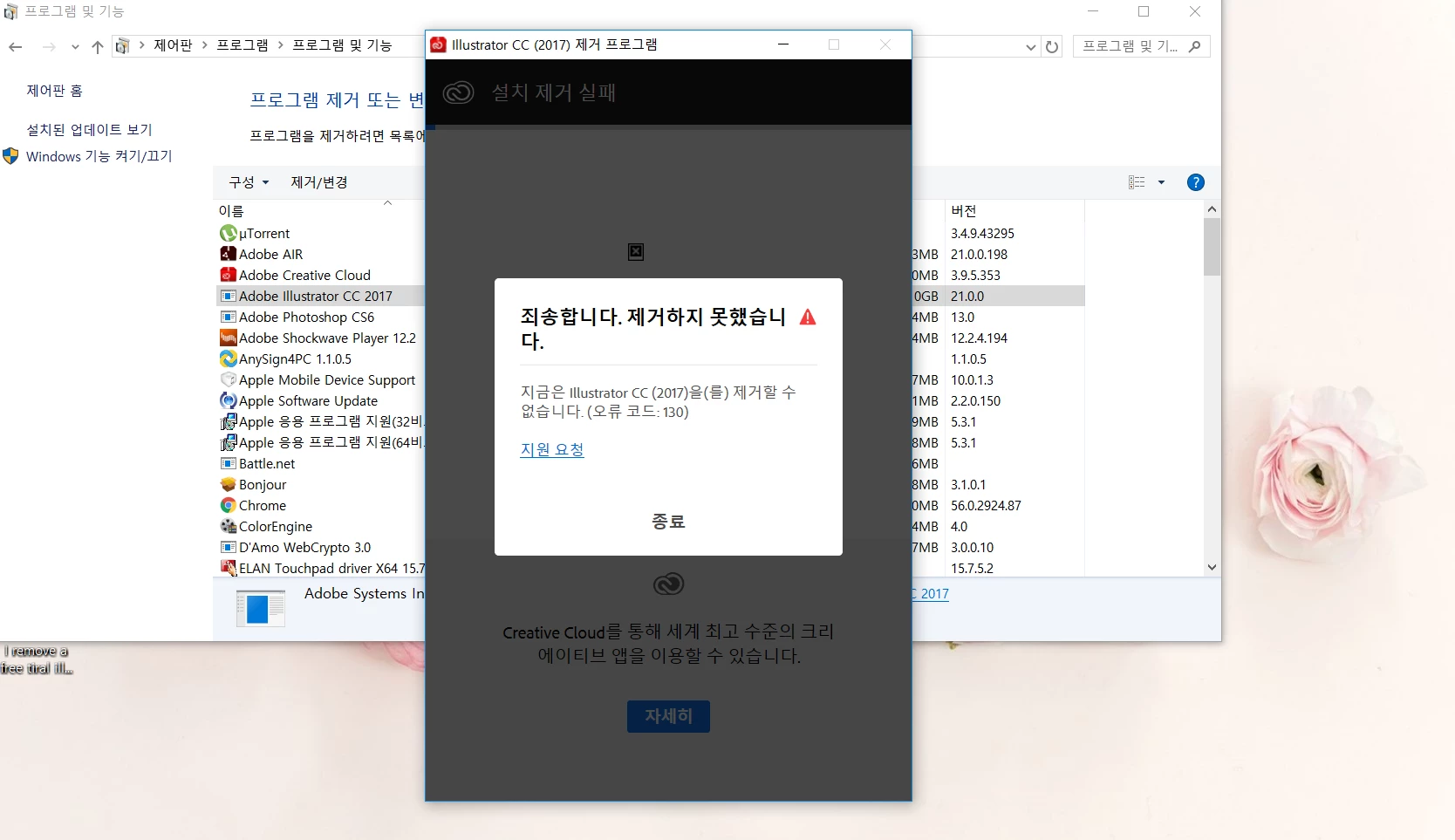 I remove a free tiral illustrator CC, so I enter the control panel and press the purge button, so An error code 103 is generated. How do I remove this?