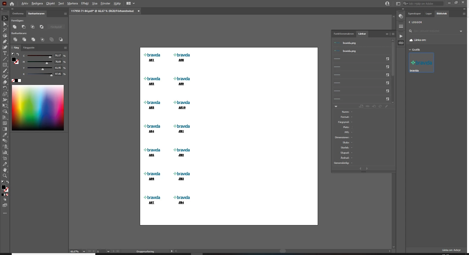 We export files from our company program as .PDF files to make them ready to print. But loggos lose quality in this process. So we edit the .PDF files on Illustrator to make them look better. I do mass production so there is basicly over 100 loggos needs to be replaced with another higher quality picture in illustrator. I do this manually(basicly putting in the right loggo with higher resolution and resizing and placing it above one of the old loggo and Alt+click copying them to their place one by one.) Is there any other way to replace all of the loggos in the file and replace them with another .png or picture? (Re-linking doesnt work at all. or am i doing something wrong here?)