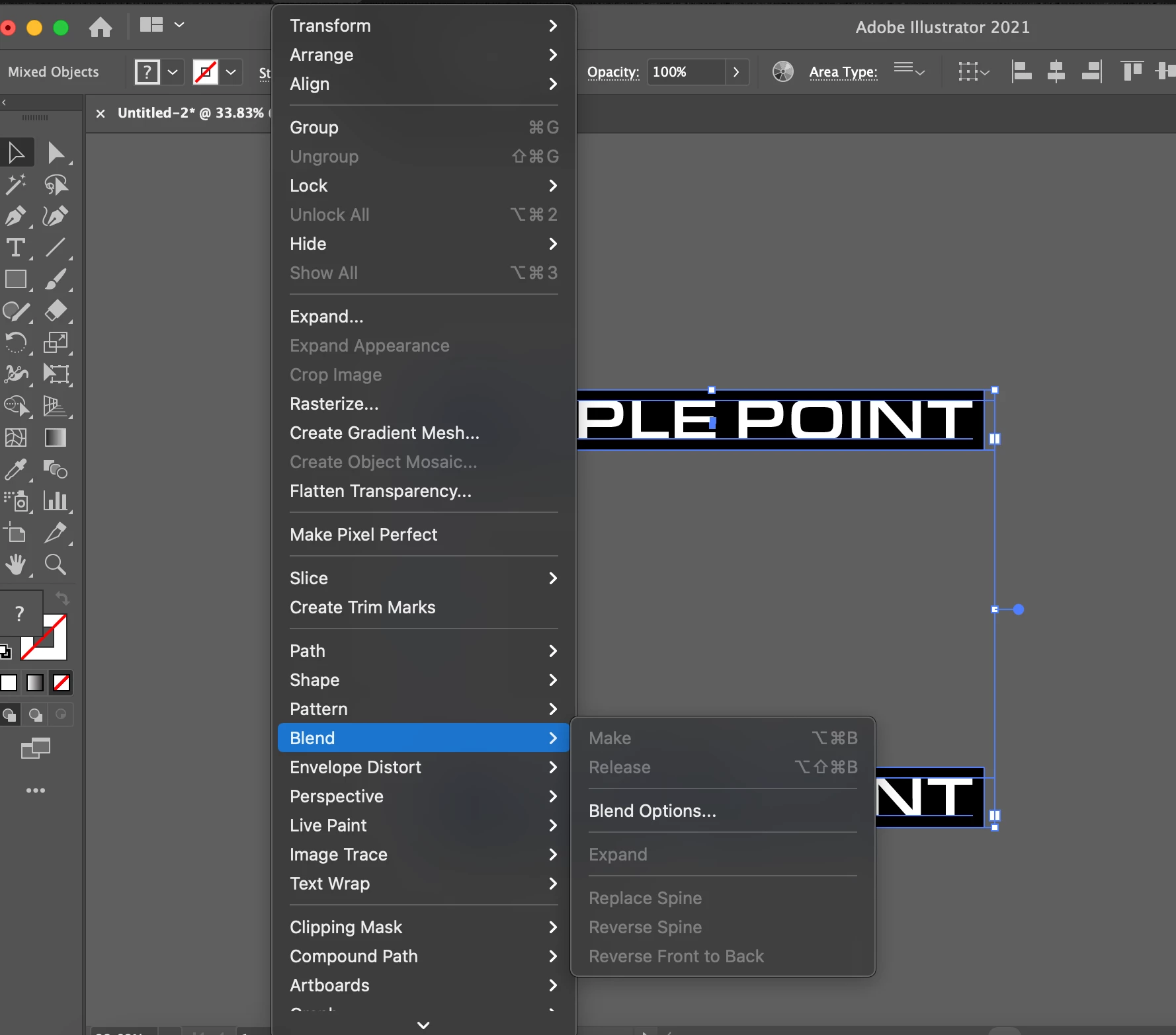 I am follwoing a tutorial on youtube trying to make a blend effect that requires me to use Blend>Make and then Blend> Blend Options. However, I'm stuck at the "make" step, its grayed out and I have tried looking at other posts here to try out some fixes with the blend tool but nothing is working. The only thing I can do is the "blend option" but the preview is greyed out as well.