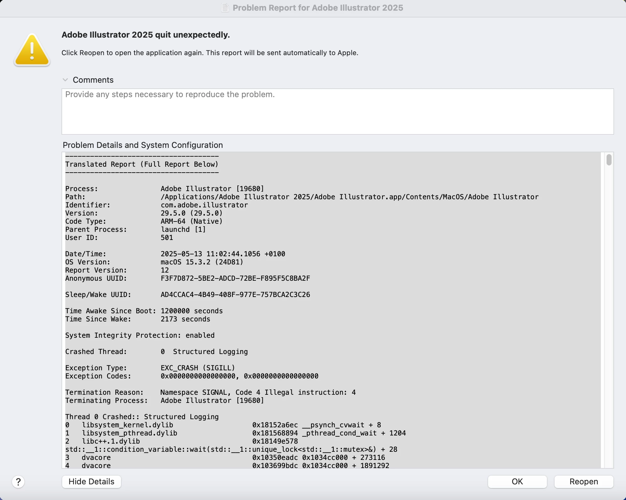 Illustrator 2025 fecha inesperadamente constantemente em MacBook M4 Max