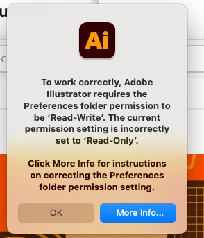 I am having trouble with launching the latest version of Illustrator 30.0. When I try to open I receive a message stating that I need to update my permission settings to read & write as they are currently at read only. I have changed these settings as per the instructions but still continue to receive the same message when I try to open.