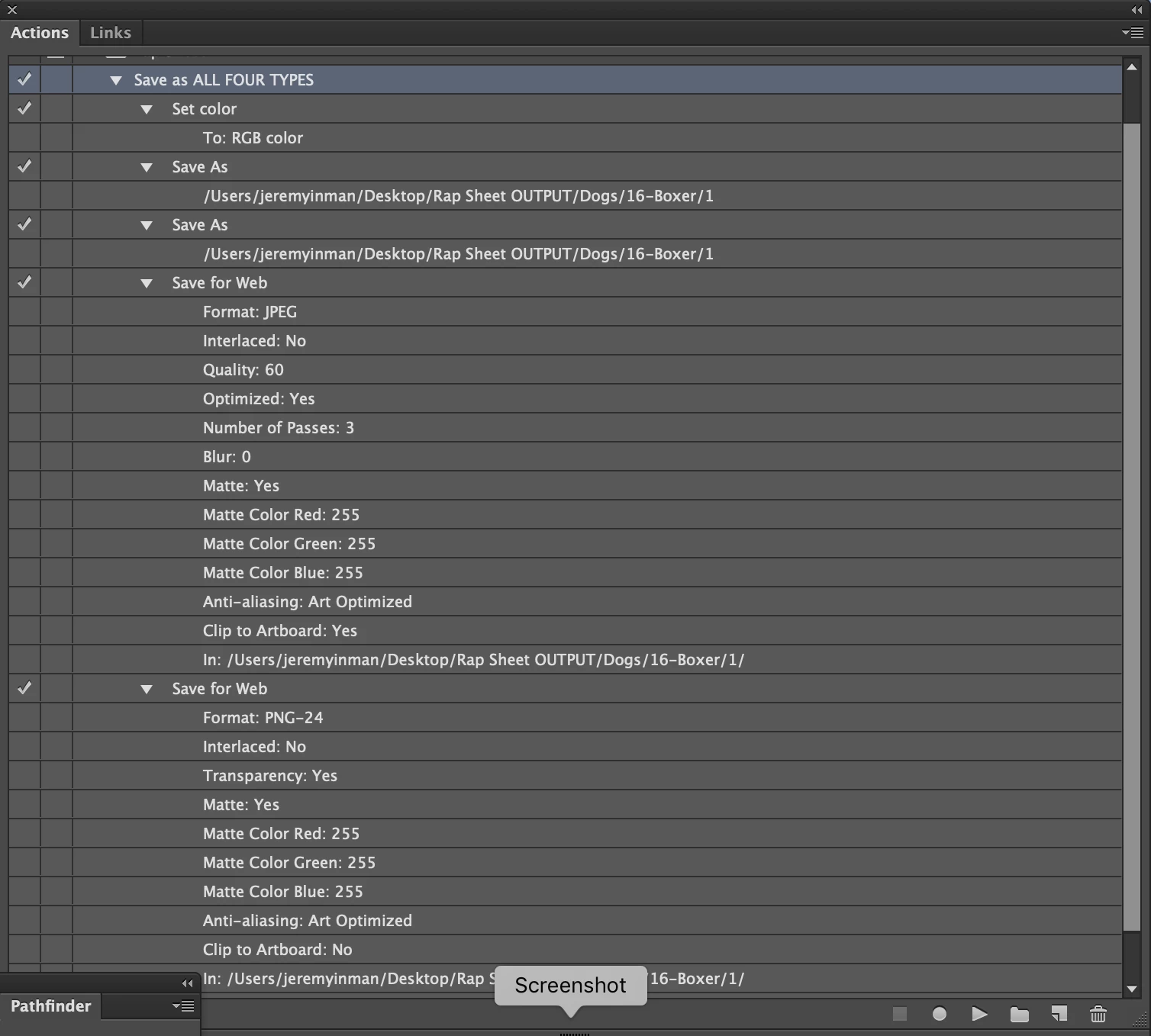 I have created a simple action to save my CS6 Illustator (Mac) file to the following four file types: