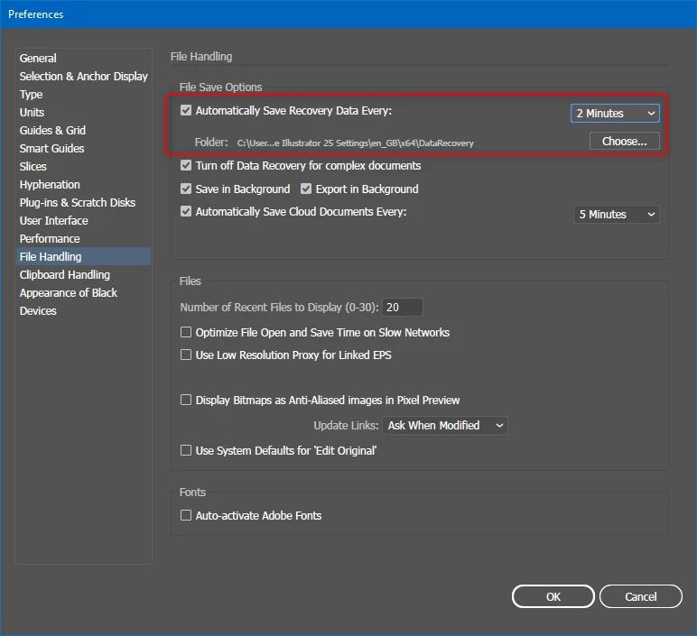 /Users/YOURUSERNAME/Library/Preferences/Adobe Illustrator 26 Settings/en_US/Data Recovery