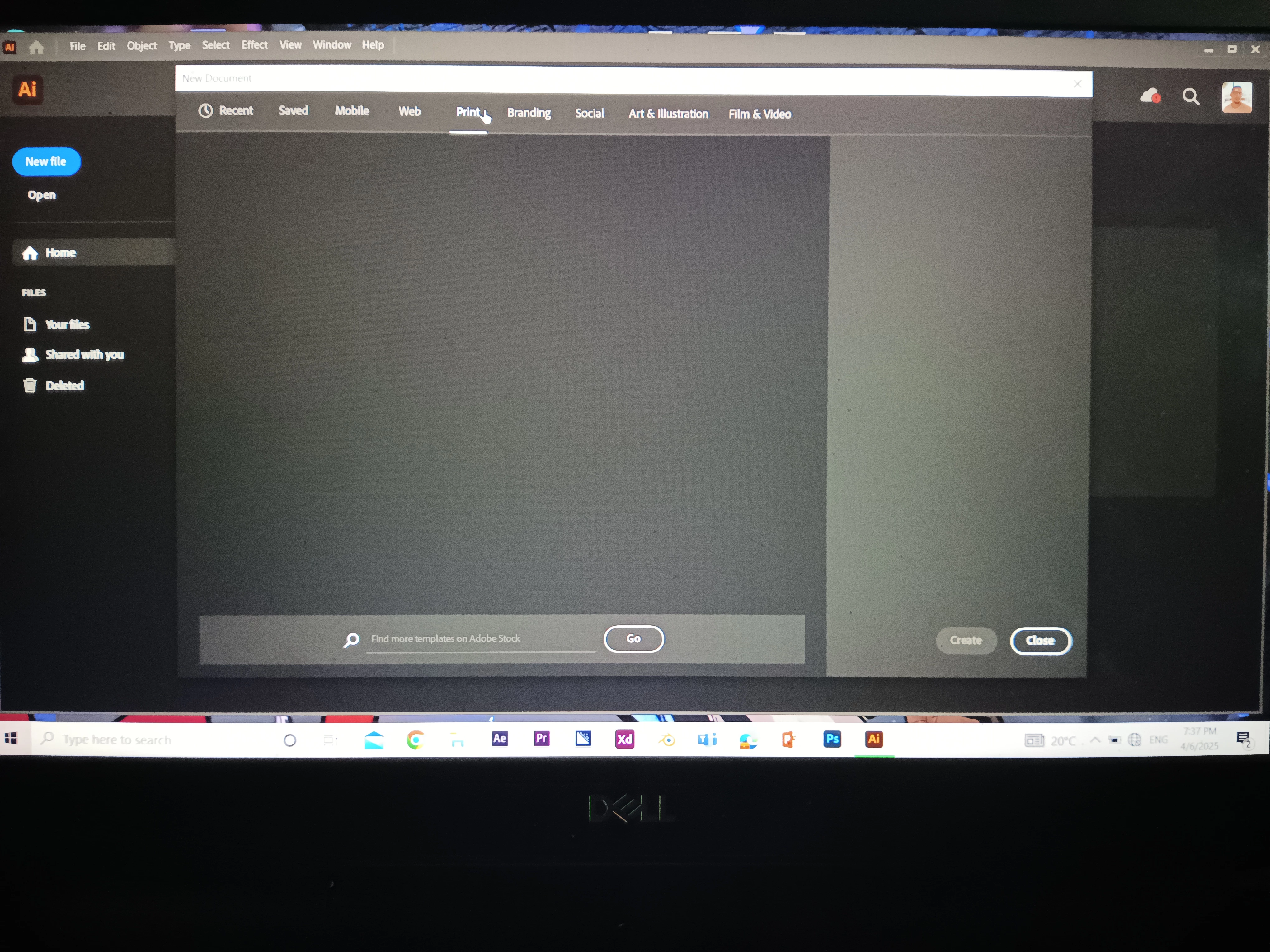 Illustrator can't create New document or open any file or import any photo