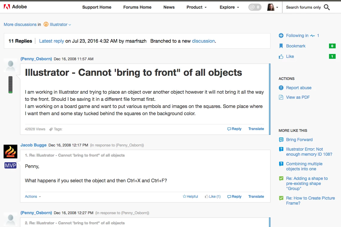 What are you referring to as "Content Page" would that be the page with the thread where I originally posted? The Main Illustrator section, or? While it should not matter now (since the moderator created this new thread branching off from the original one) I'd still like to know how'd I start a new thread since there seems to be no CTA button or section allowing me to do so.