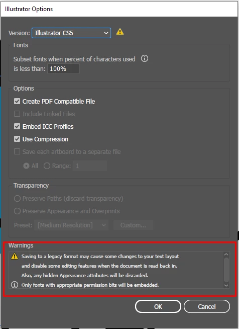 Illustrator cc 2020 save downgrade to cs5, vector becoming an image?