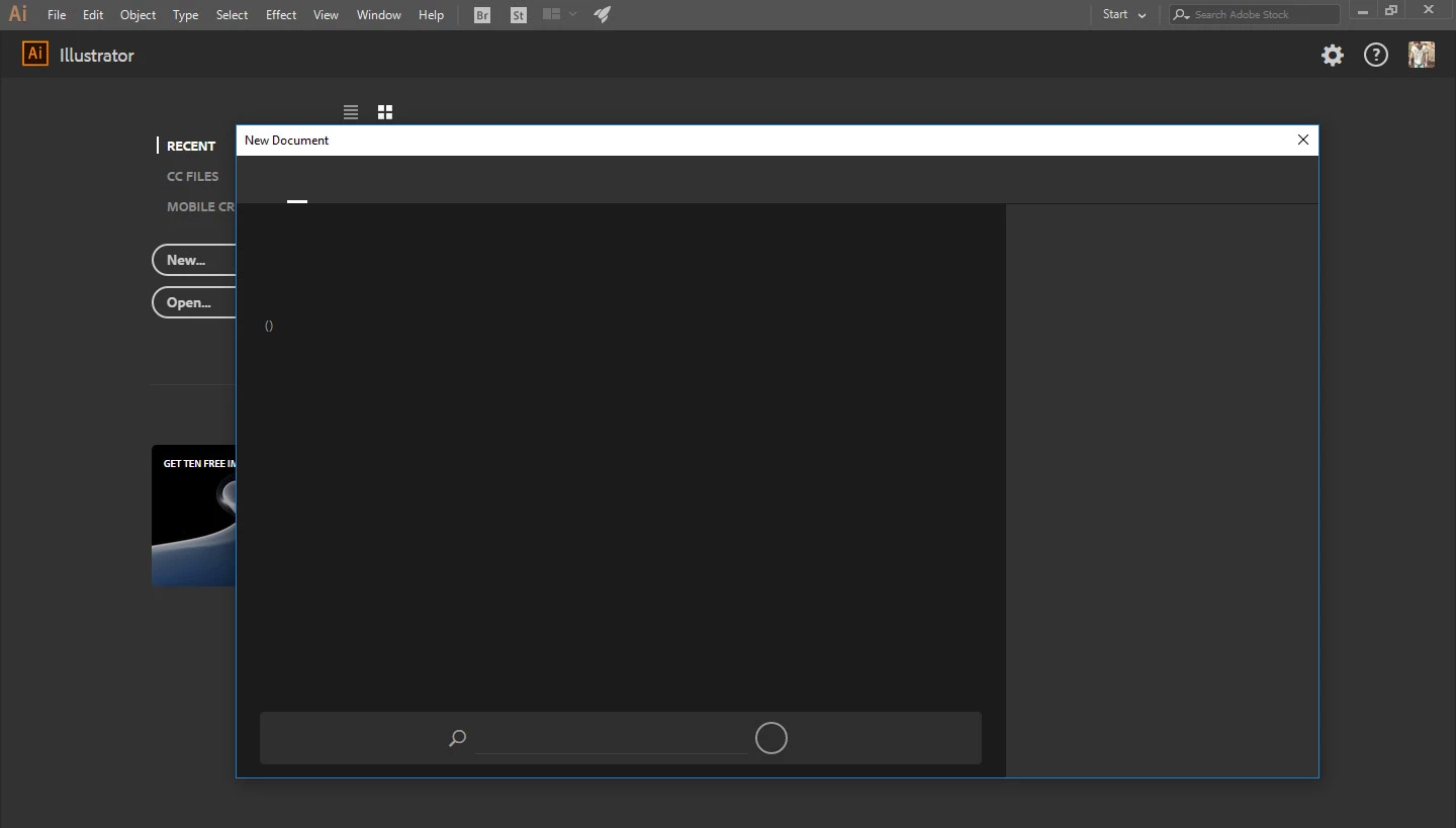 Illustrator CC - New document window display error