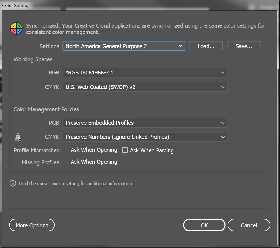 You can check at the bottom of your file if the color profile of your document is the same as in your Color Settings.